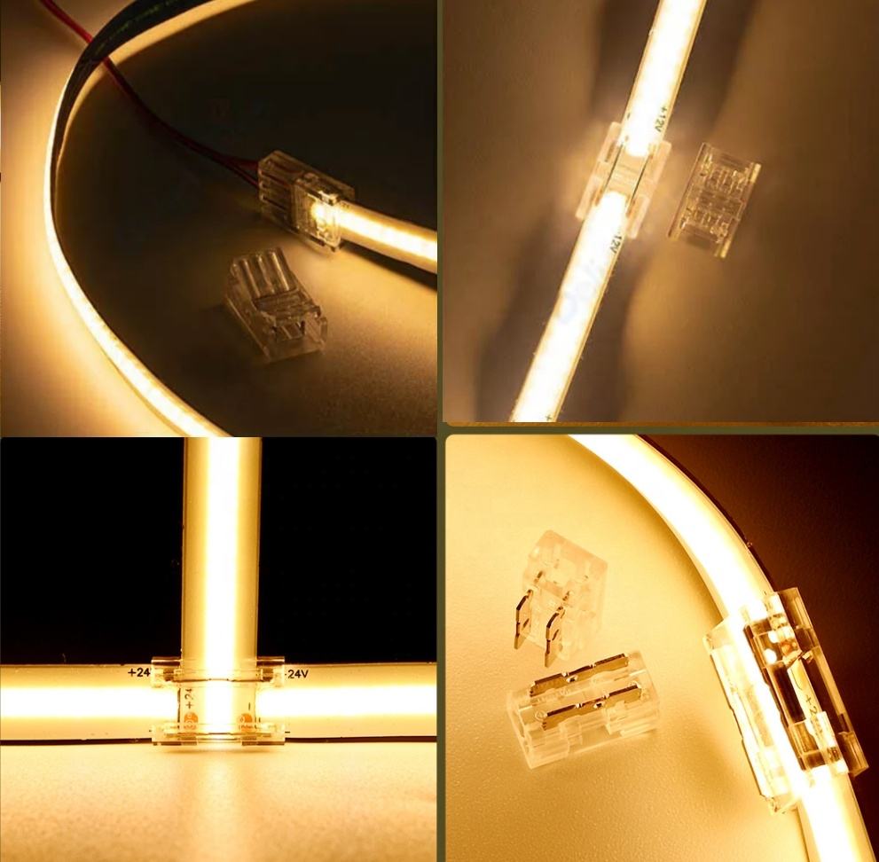 ▲ COB/SMD connector. ▲ Suitable for DC 1V~DC 24V strip. ▲ 2P(single color),3P(CCT),4P(RGB),5P(RGBW),6P(RGBWW). ▲ Suitable for 5mm,8mm,10mm,12mm..COB/SMD light strip.